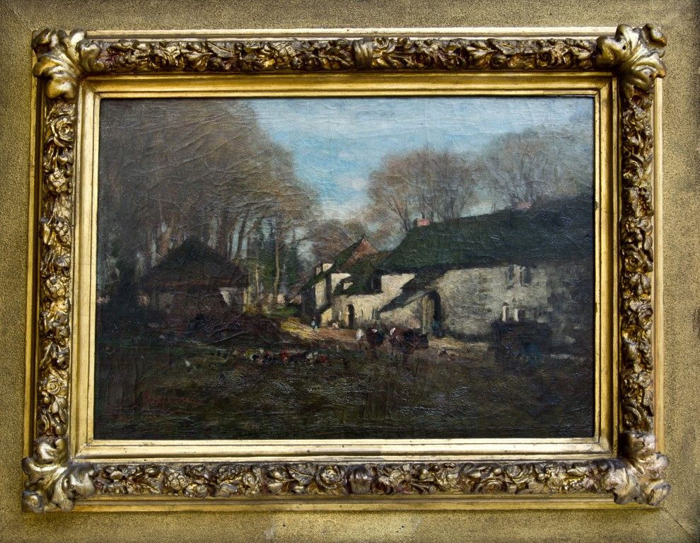 „Ferma la Barbizon”, un ulei pe pânză lipită pe lemn. În timp ce admirăm tabloul, unul dintre specialiștii muzeului ne povestește că, în anul 1862, în timpul studiilor pariziene, Grigorescu a participat la celebrul „concurs al pomului”. Tema acestui concurs a fost o scenă istorică într-un peisaj. „Pentru a se documenta, pictorul studiază arborii seculari aflați în apropierea Parisului, în pădurea Fontainebleau. Din acest moment întregul deceniu este dedicat studiului naturii, iar din acest moment Barbizon se transformă, pentru tânărul artist român, dintr-un simplu sat într-o veritabilă colonie a pictorilor. În colecția Zambaccian, lucrarea „Ferma la Barbizon” evocă tocmai atmosfera acestui sat în care Grigorescu cunoaște cea mai profundă schimbare a stilului de a picta, abandonând pictura de factură academistă deprinsă la Paris pentru a ajunge în cele din urmă la abordarea de tip impresionist. Acest peisaj amintește tocmai de momentul de trecere din cariera artistulu
