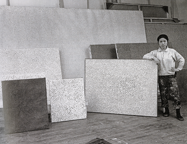 Yayoi Kusama s-a născut în 1929 în Matsumoto, Japonia. A început să picteze în copilărie pentru a exprima halucinațiile și a scăpa de o dinamică familială marcată de abuz și neglijență. La Școala de Arte și Meserii din Kyoto, ea a studiat Nihonga, un stil de pictură formală, tradițională japoneză. S-a mutat în 1958 la New York, inspirată de ascensiunea expresionismului abstract și de o scrisoare de la Georgia O’Keeffe