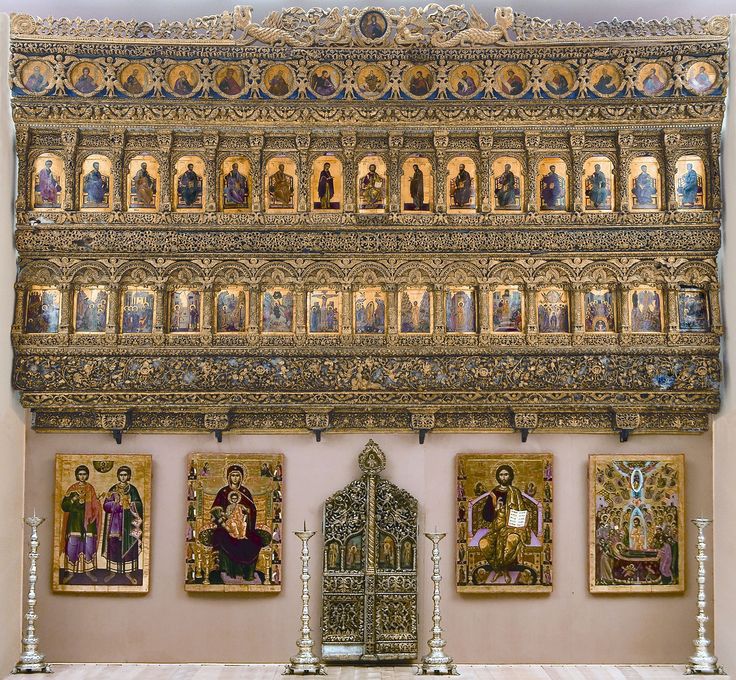 Galeria de Artă Veche Românească. Sala V, Arta din Ţara Românească, secolul XVIIGaleria de Artă Veche Românească. Vizitatori în sala VII, Arta în Țările Române în a doua jumătate a secolului XVIII și la începutul secolului XIXGaleria de artă veche românească (Galeria de Artă Veche Românească. Sala V, Arta din Ţara Românească, secolul XVII) Broderie – Epitaful lui Silvan Caftan ChivotIcoană – Coborârea de pe cruceIcoană – Sfinţii Împăraţi Constantin şi ElenaIconostasul bisericii mănăstirii CotroceniPictor anonim – Hatmanul Manolache ManuPictură murală – Autoportretul lui Pârvu Mutu