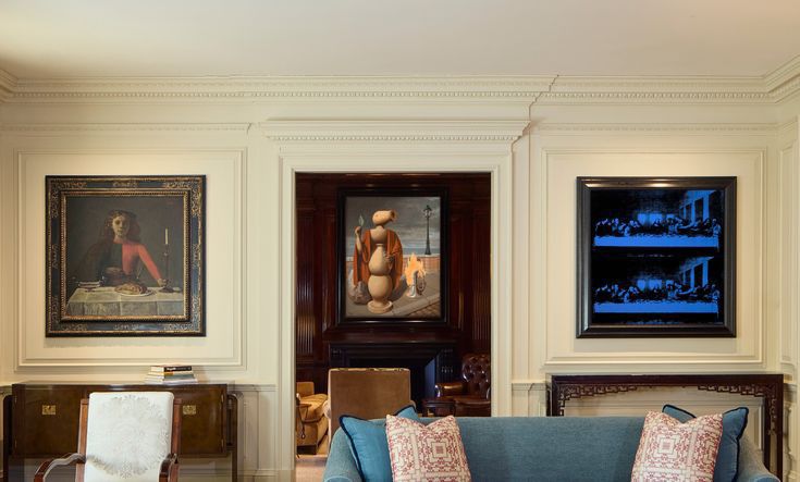 Reședința din Manhattan a lui Leonard și Louise Riggio. De la stânga la dreapta: Balthus, Jeune fille en vert et rouge (Le chandelier), 1944-45; René Magritte, Les droits de l’homme , 1947-48; Andy Warhol,  The Last Supper , 1986. Toate oferite în Leonard & Louise Riggio: Collected Works , mai 2025 la Christie’s din New York]